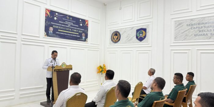 MUARA SABAK– Suasana Natal yang sarat makna dan harapan terasa hangat di Lapas Narkotika Kelas IIB Muara Sabak, Kamis (25/12/2025). Pada momen Hari Raya Natal 2025, jajaran Lapas Narkotika Muara Sabak melaksanakan pemberian Remisi Khusus (RK) Natal kepada delapan warga binaan pemasyarakatan beragama Nasrani yang telah memenuhi persyaratan sesuai ketentuan peraturan perundang-undangan.