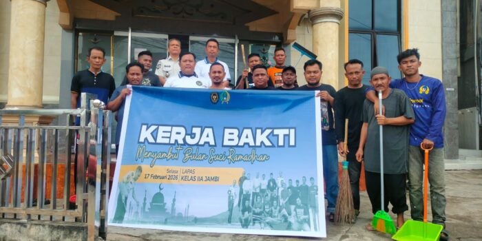 JAMBI – Dalam rangka menyambut Bulan Suci Ramadhan 1447 H, Lembaga Pemasyarakatan Kelas IIA Jambi melaksanakan kegiatan kebersihan/kerja bakti sebagai bentuk kepedulian sosial dan pengabdian kepada masyarakat.