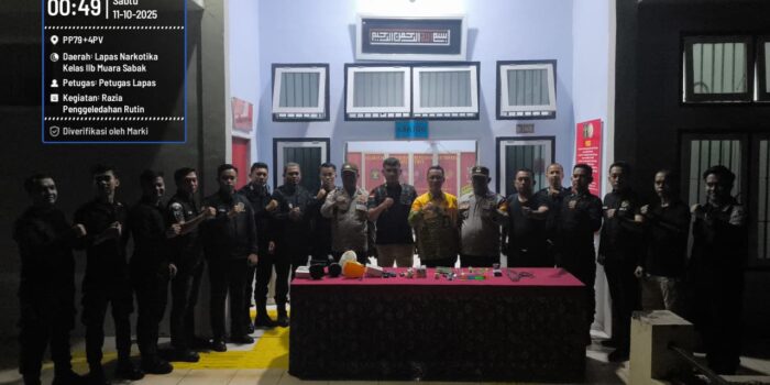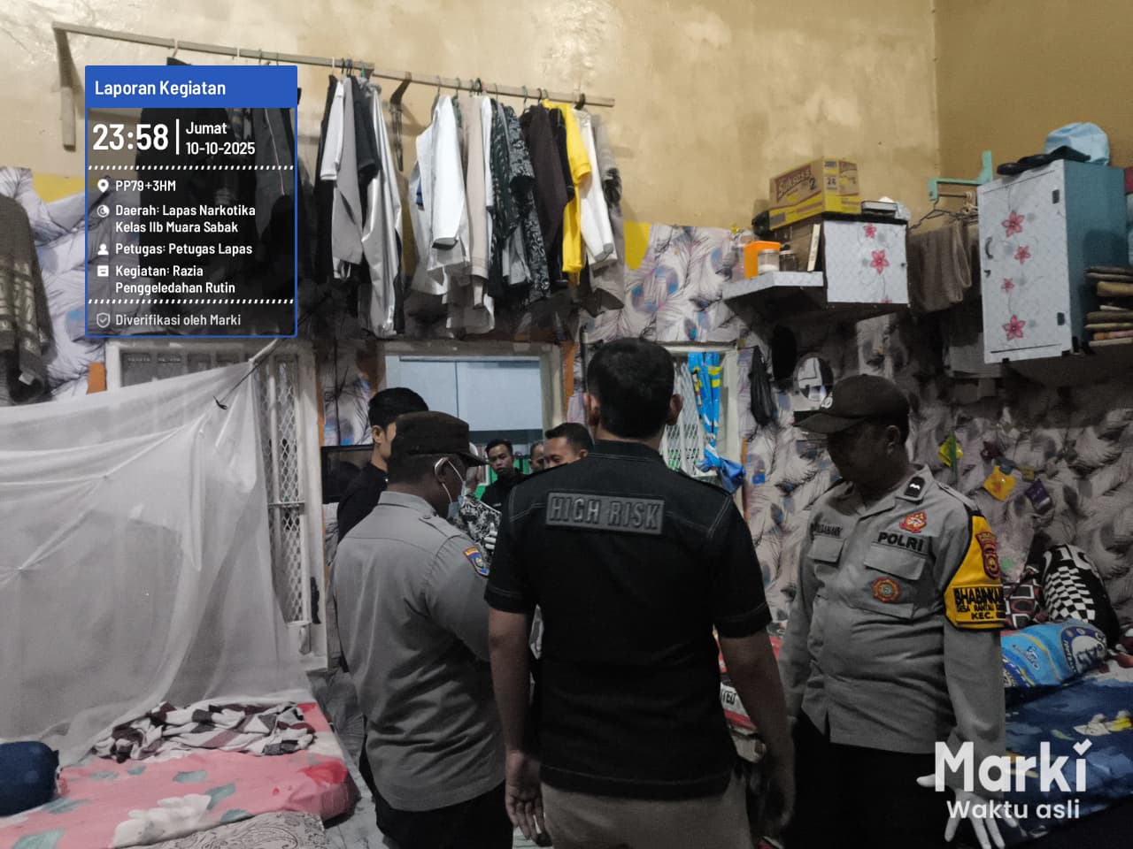TANJAB TIMUR -Lembaga Pemasyarakatan (Lapas) Narkotika Kelas IIB Muara Sabak kembali melaksanakan razia insidentil sebagai bentuk komitmen dalam menjaga keamanan dan ketertiban di lingkungan pemasyarakatan. Kegiatan ini dilaksanakan pada Jumat malam 10 Oktober 2025, dimulai sejak pukul 23.45 WIB hingga 00.45 WIB, dan dipimpin langsung oleh Kalapas Muhammad Askari Utomo.
